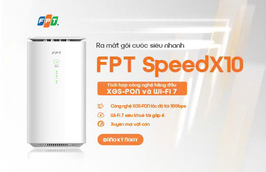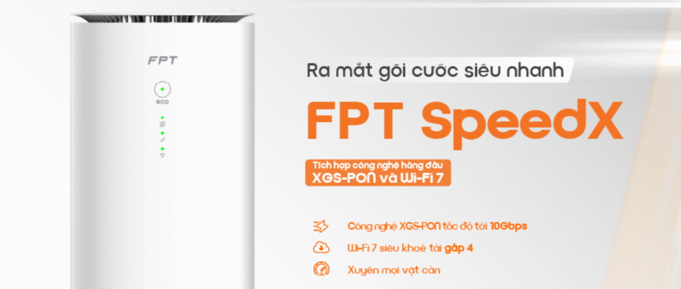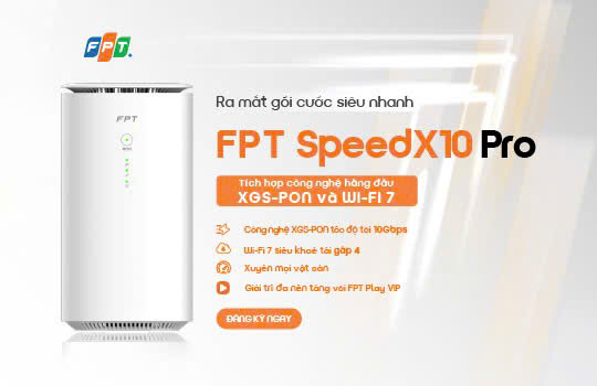 Gói FPT SpeedX10 Pro – Gói cước Wi-Fi 7 siêu tốc độ trên hạ tầng XGS-PON, tốc độ lên đến 10 Gbps, phủ sóng rộng khắp.