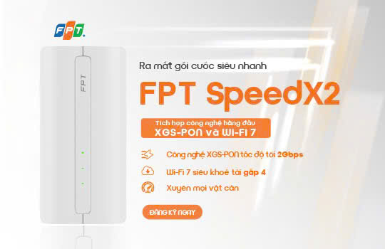Gói FPT SpeedX2 – Gói cước Wi-Fi 7 siêu tốc độ trên hạ tầng XGS-PON, tốc độ lên đến 2 Gbps, phủ sóng rộng khắp.