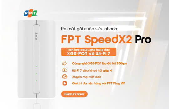 Gói FPT SpeedX2 Pro – Gói cước Wi-Fi 7 siêu tốc độ trên hạ tầng XGS-PON, tốc độ lên đến 2 Gbps, phủ sóng rộng khắp.